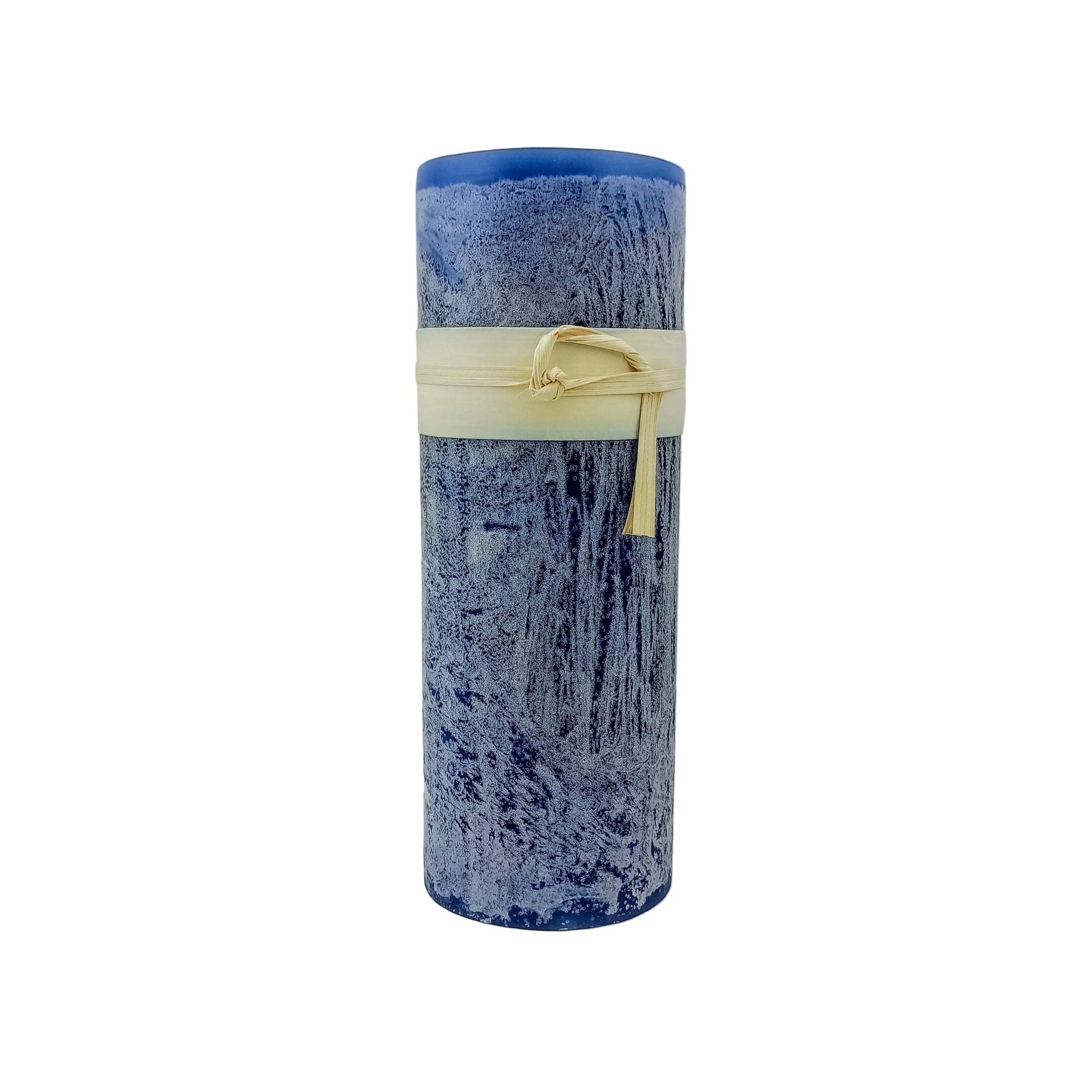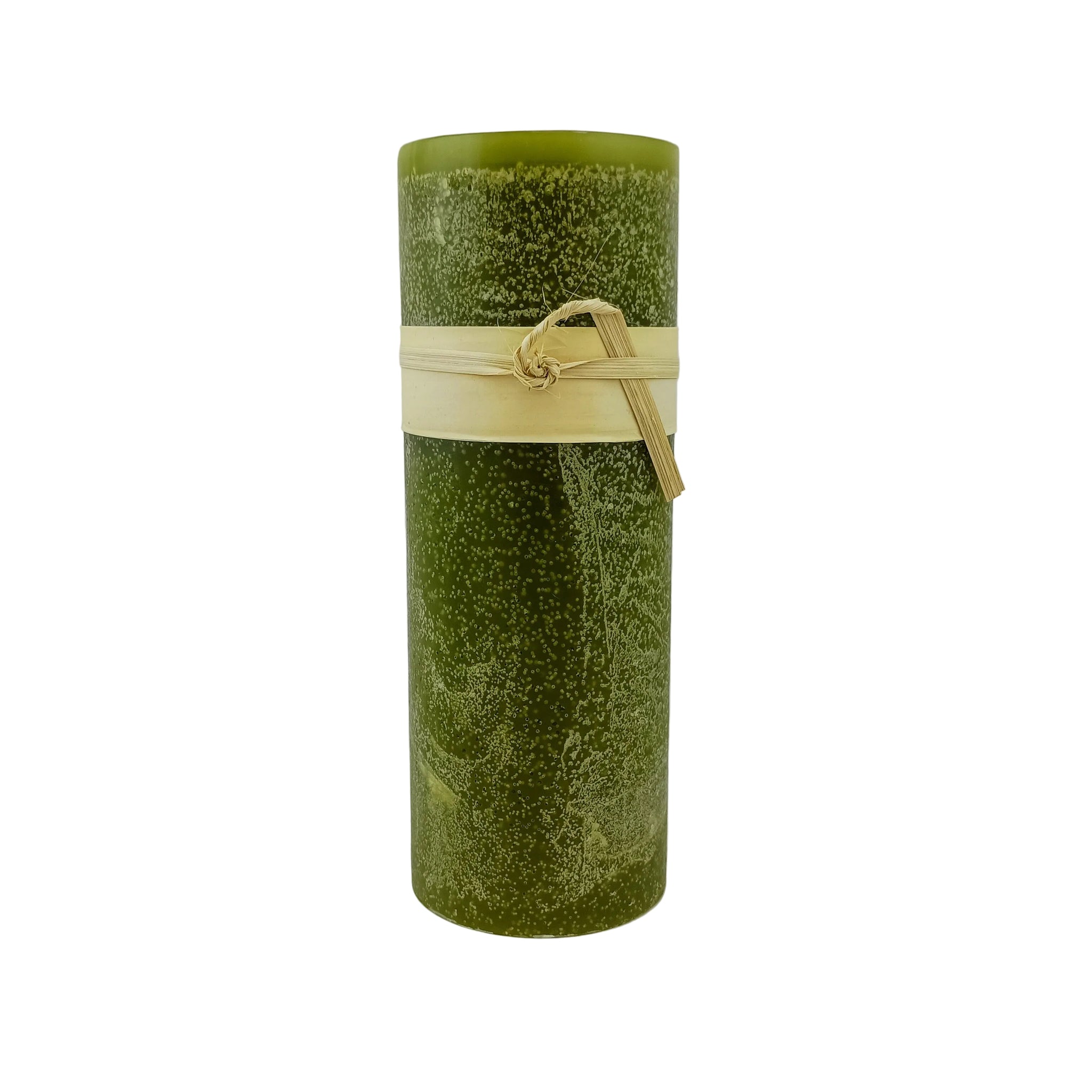 Candles are made from paraffin wax and cotton wicks. Measures 9" tall and 3.25" in diameter. Unscented