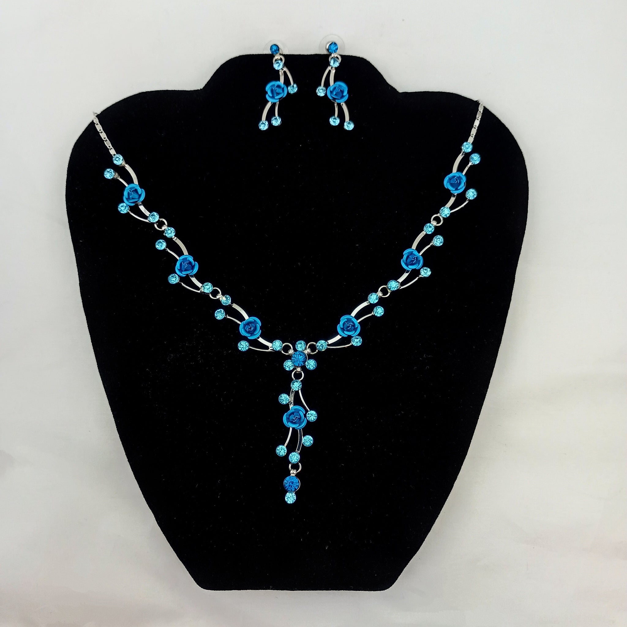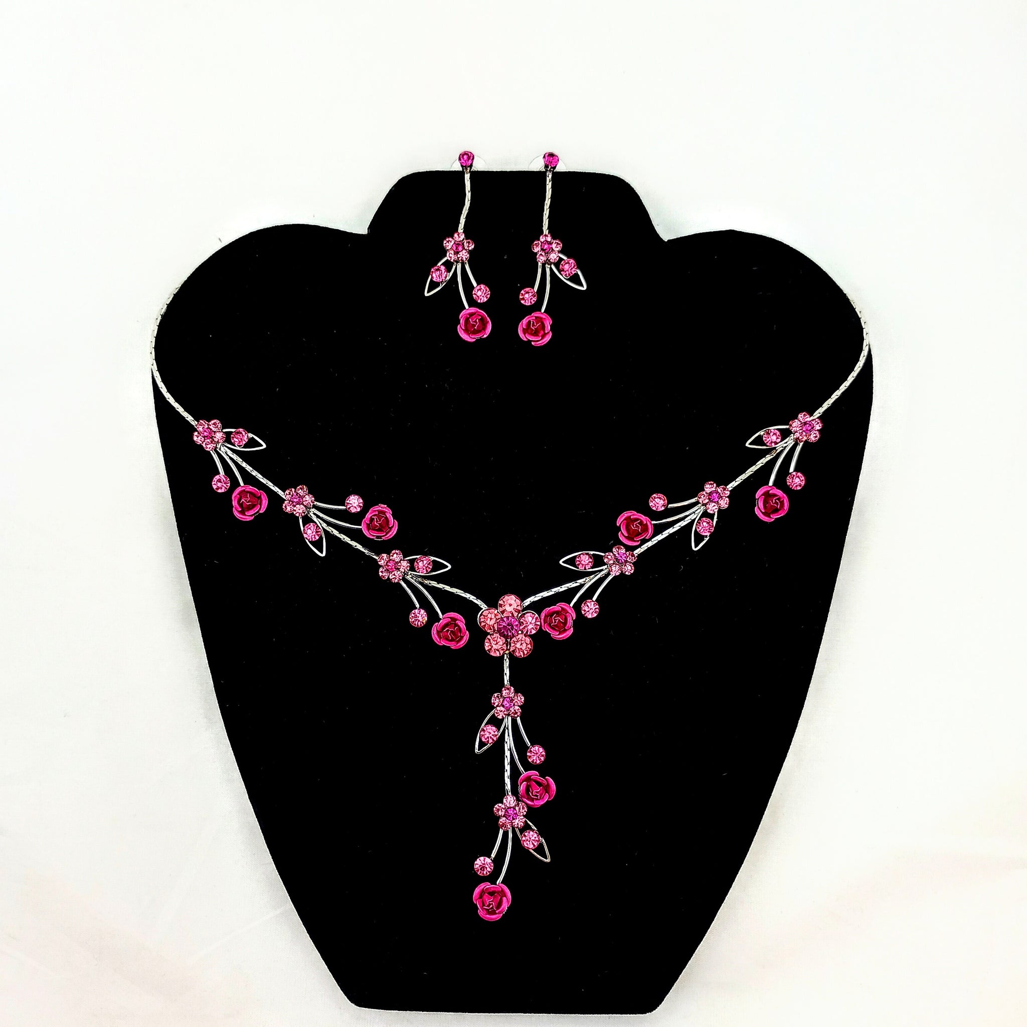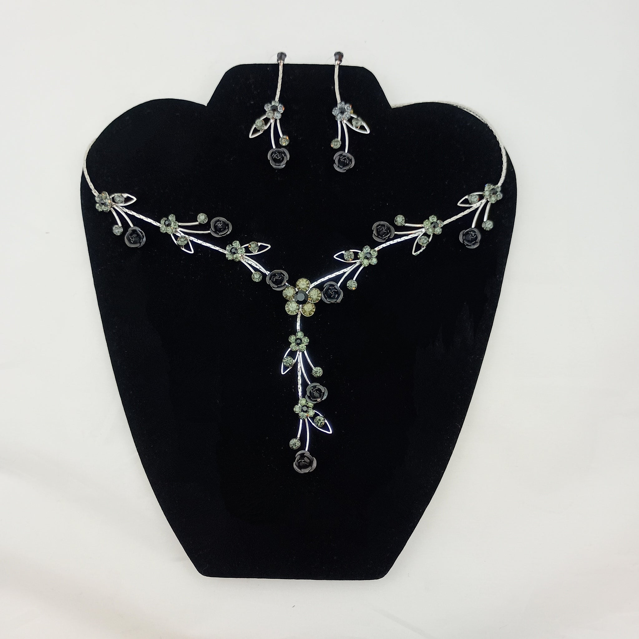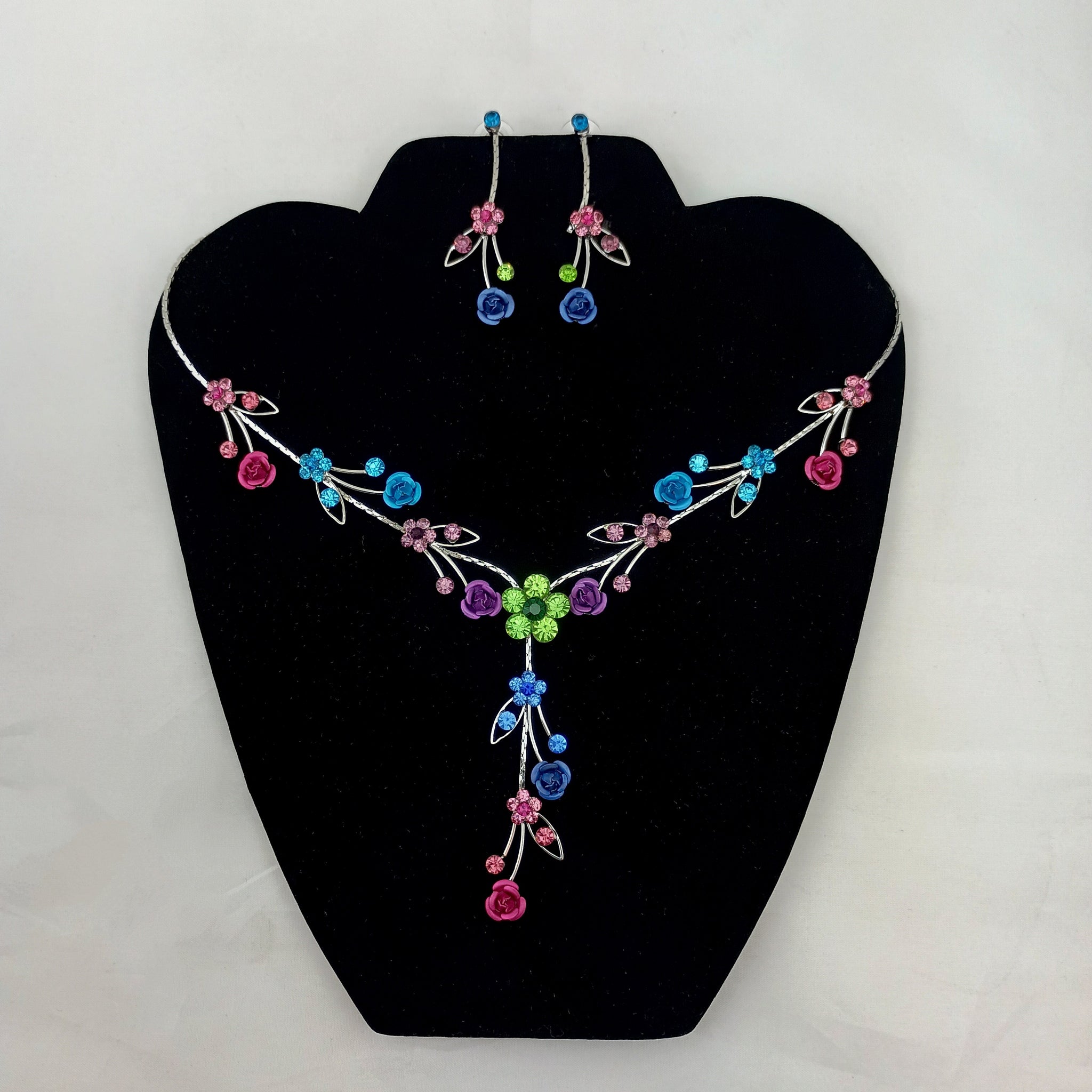 Rhinestones with Silver plating, Nickle Free. Post earrings. Adjustable necklace, 15.5"-18"